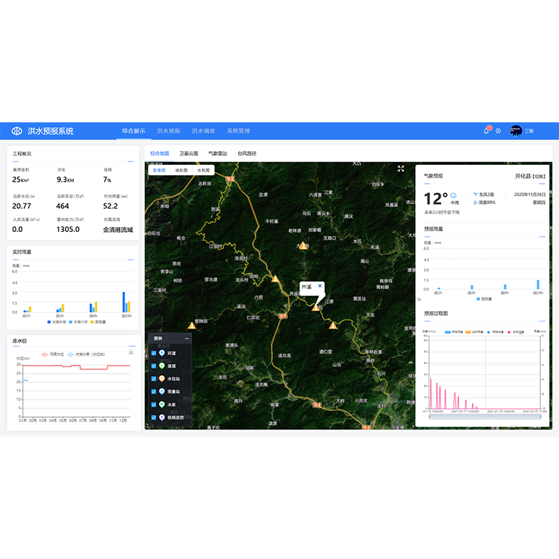 水庫洪水預報調度平臺是通過多維多時空尺度數學模型,擴展數字化表達和可視化呈現功能,構建知識圖譜、業務規則、歷史場景和專家經驗等知識庫,打造數字孿生模擬仿真平臺,實時監視、洪水預報、水庫調度、閘門信息、水雨情信息等信息,實現信息深度交互和融合功能,為用戶提供集水庫洪水預報和水庫調度于一身的工作平臺,